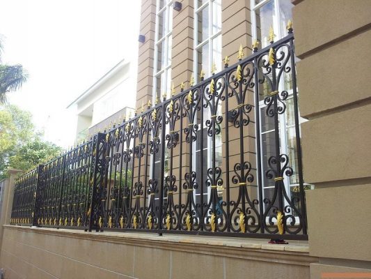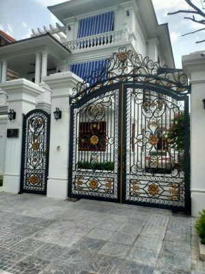 Hàng rào sắt nghệ thuật được tạo bởi các thanh sắt đặc uốn hoa văn nghệ thuật rất kỳ công, tỉ mỉ và tinh tế. [...]